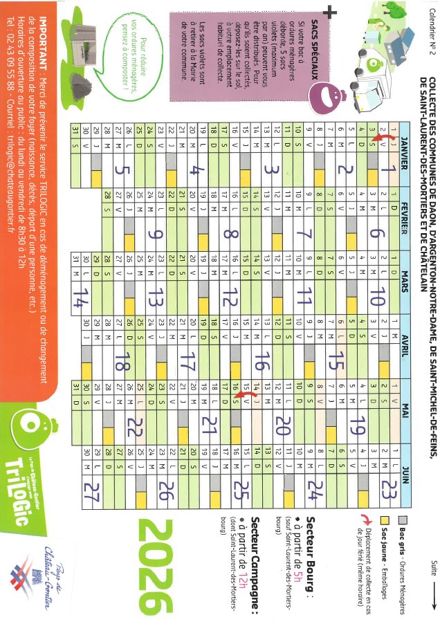 Vous trouverez ci -joint le calendrier de la collecte TRILOGIC 2026.